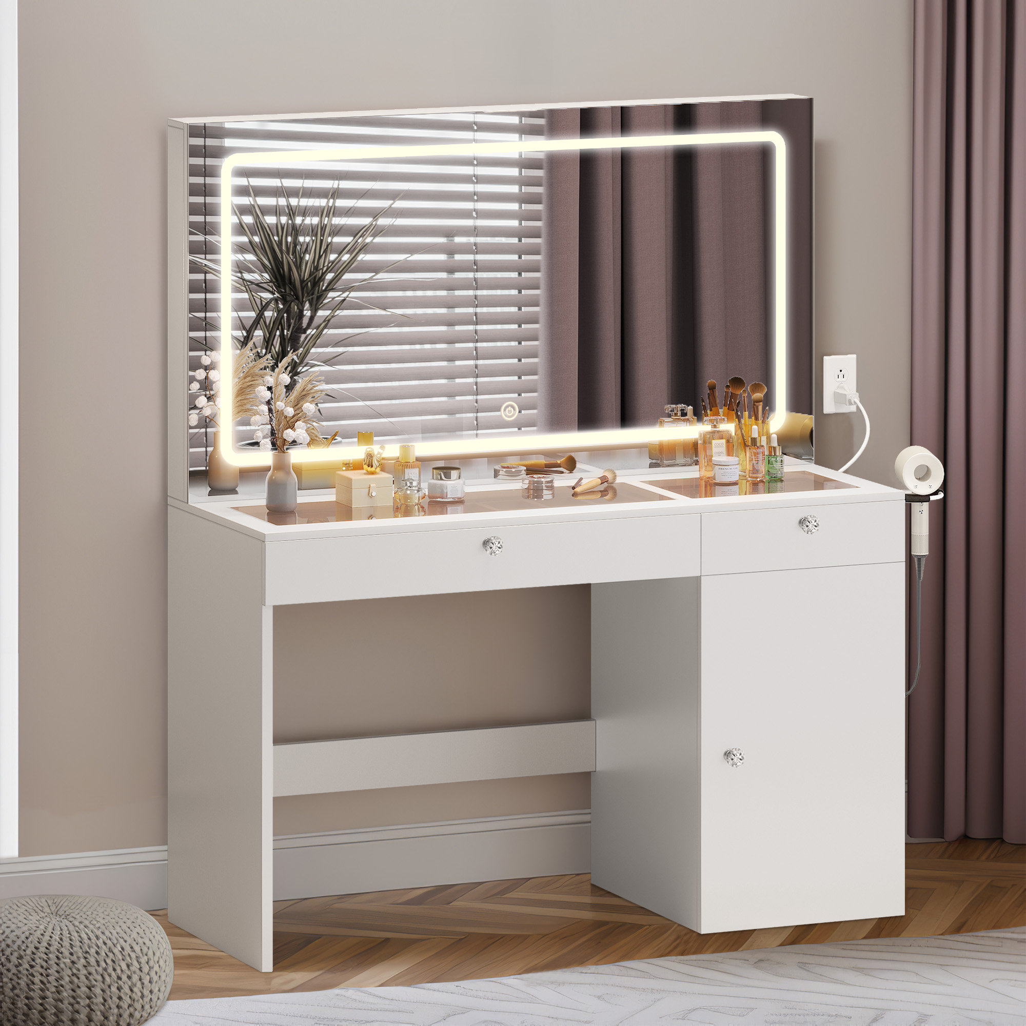 YINTATECH Makeup Vanity Table with LED Lighted Mirror & Power Outlet ...