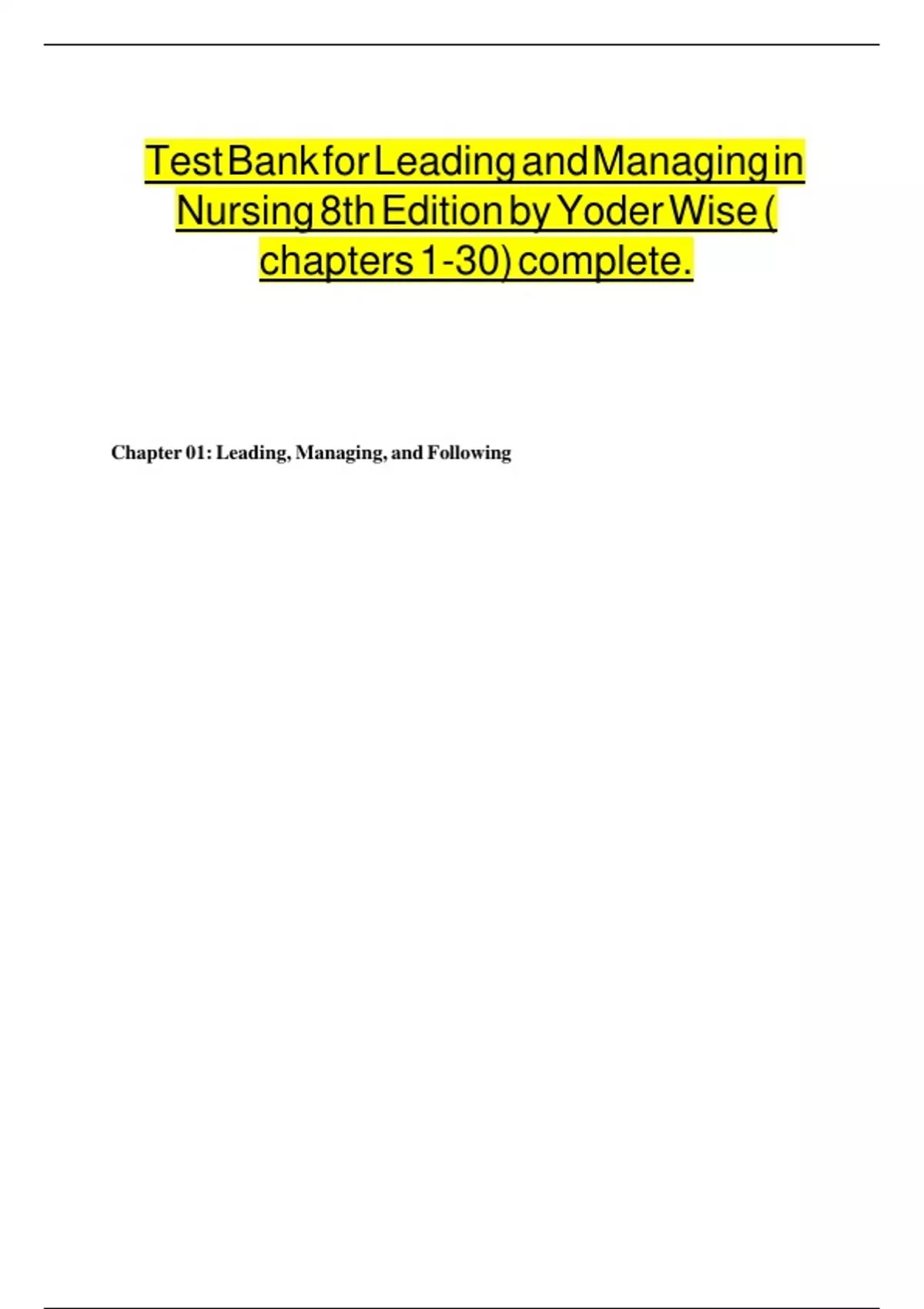 Test Bank for Leading and Managing in Nursing, 8th Edition (Yoder-Wise ...