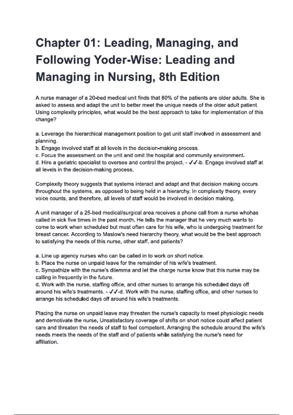 SOLUTION: Test bank yoder wise leading and managing in nursing 8th ...