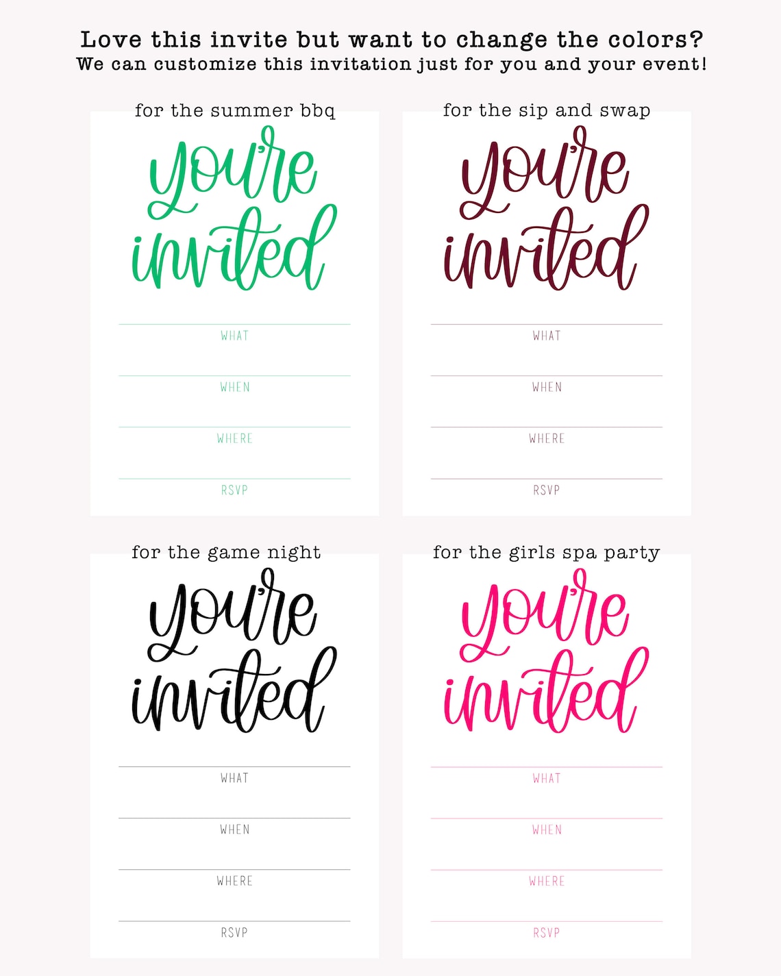 Printable and Editable You're Invited Invitation • Fill in the Blank ...