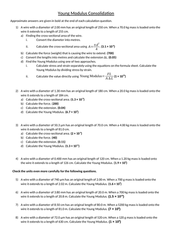 The Young Modulus Worksheet - A Level Physics | Teaching Resources