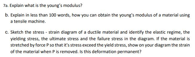 Solved 7a. Explain what is the young's modulus? b. Explain | Chegg.com