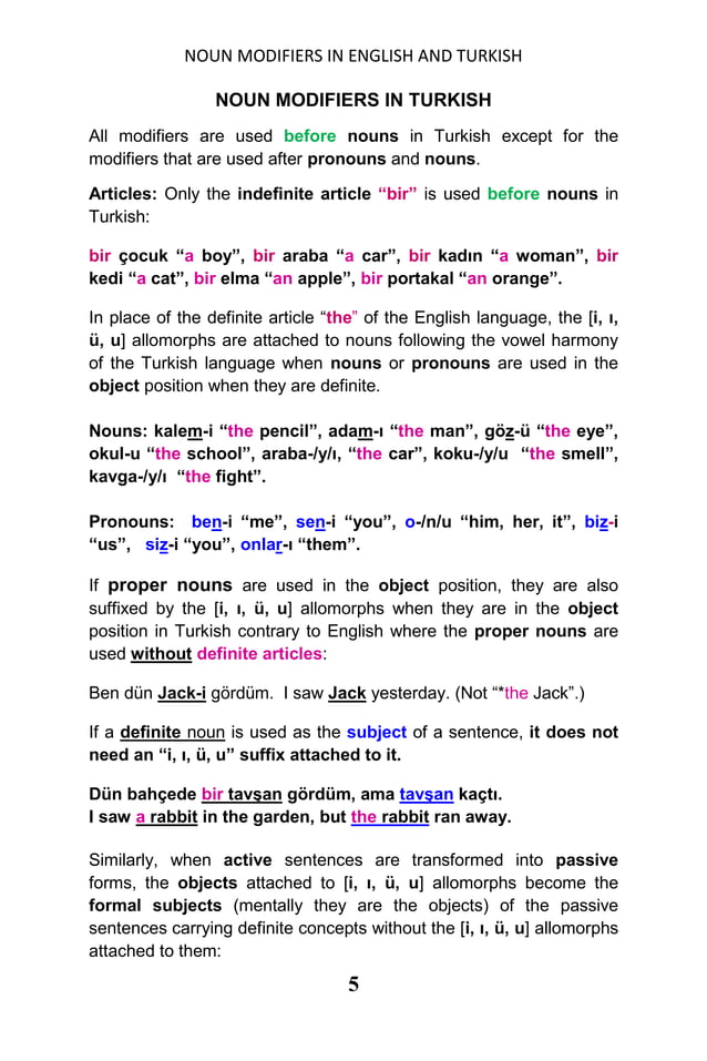 Noun modifiers in english and turkish, yuksel goknel | PDF
