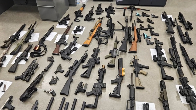 Marijuana ring dismantled: 50 guns seized, suspect at large, officials say