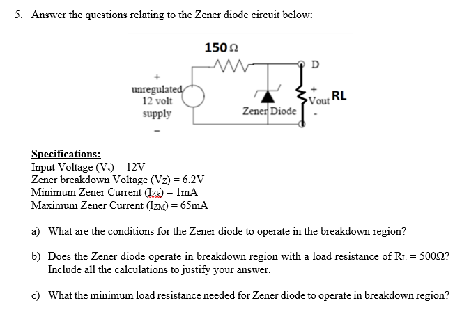 Solved 5. Answer the questions relating to the Zener diode | Chegg.com