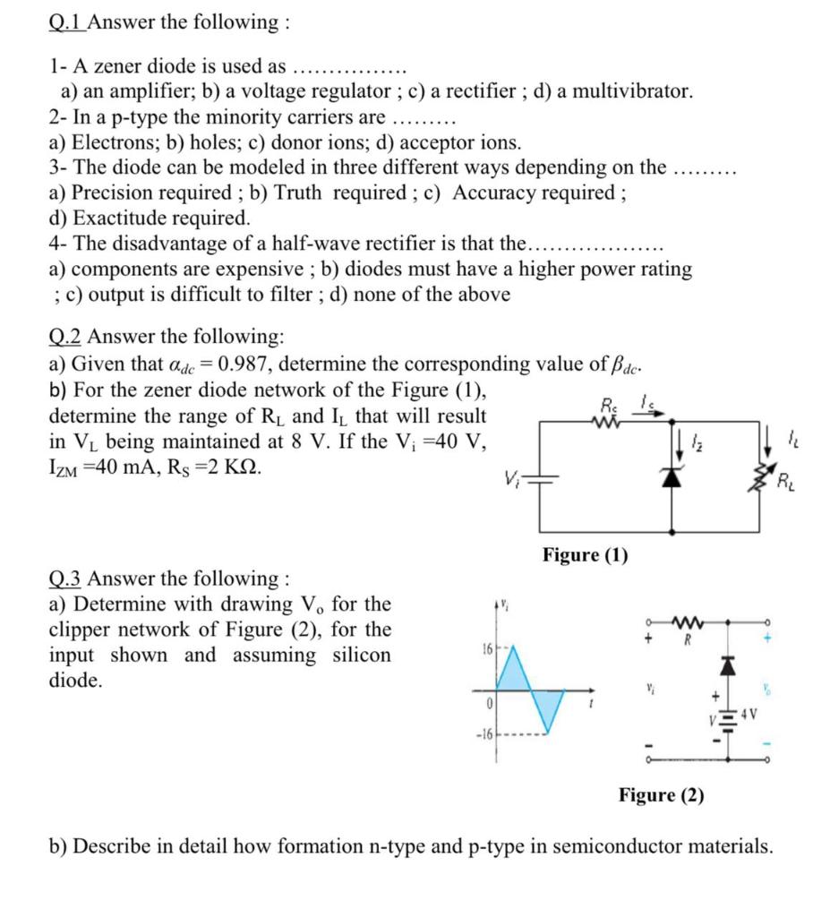 Solved Q.1 Answer the following: 1- A zener diode is used as | Chegg.com