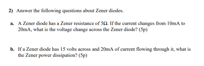 Solved 2) Answer the following questions about Zener diodes. | Chegg.com