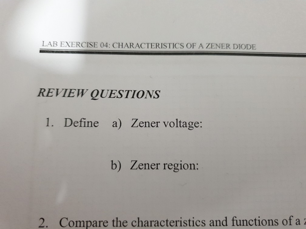 Solved LAB EXERCISE 04: CHARACTERISTICS OF A ZENER DIODE | Chegg.com