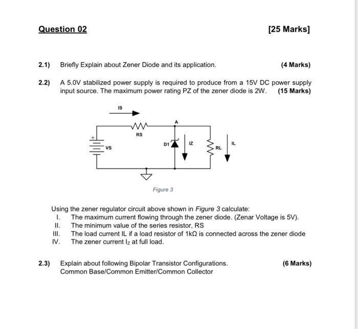 SOLVED: Question 2: [25 marks] (a) Zener diode used in regulator ...