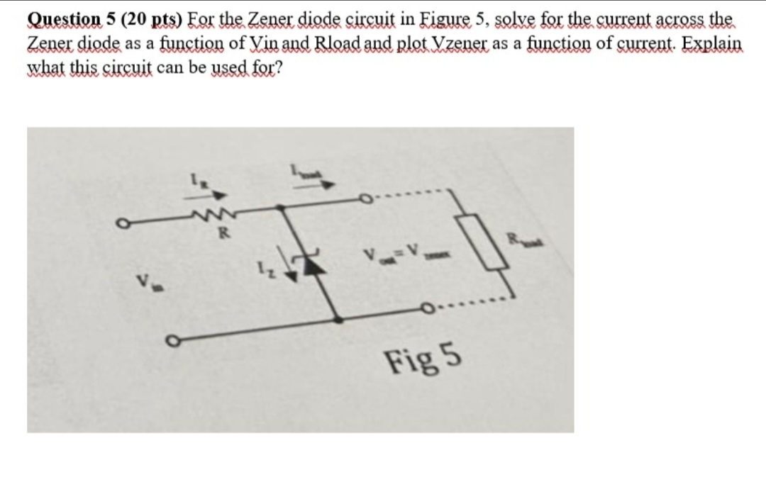 Question 5 ( 20 pts) For the Zener diode circuit in | Chegg.com