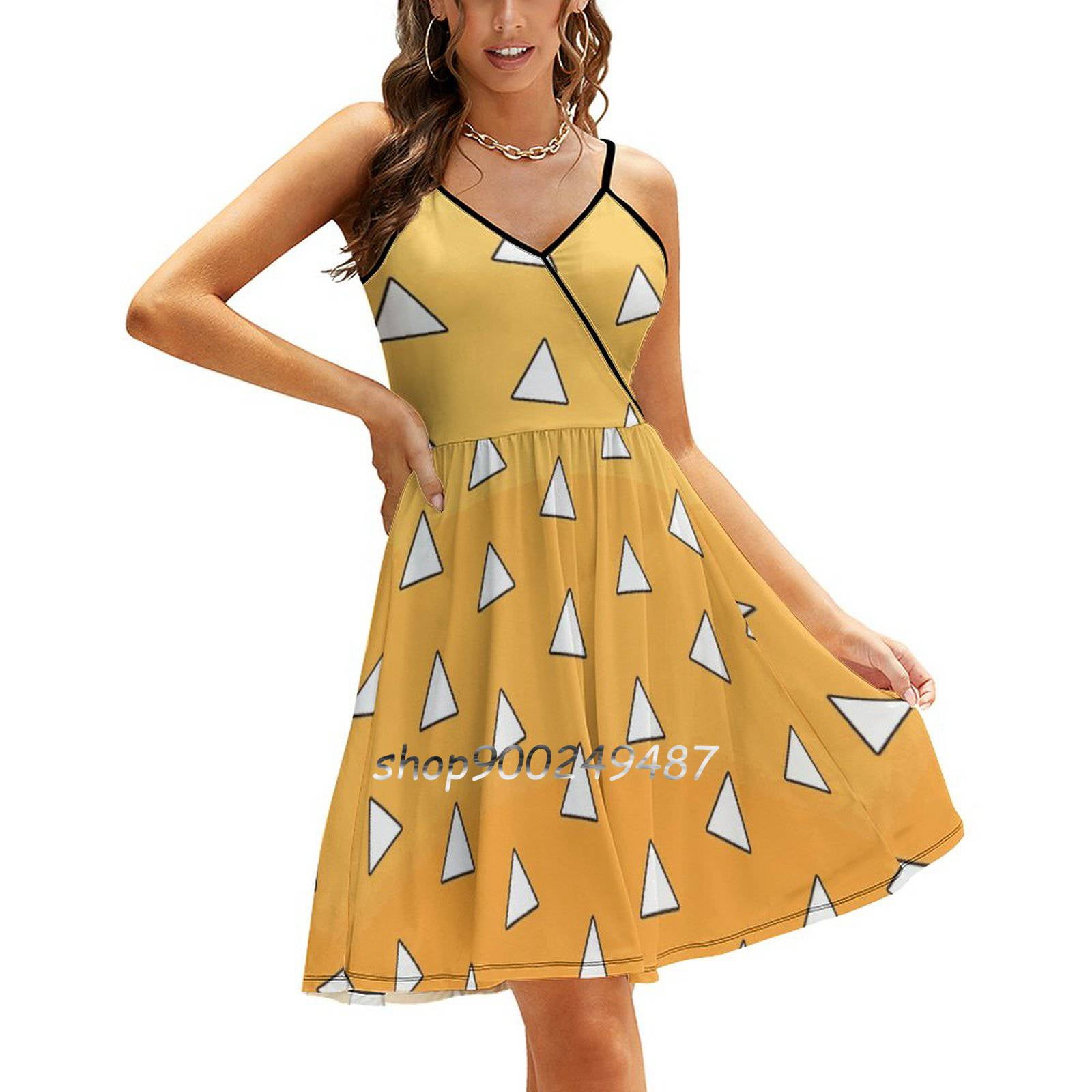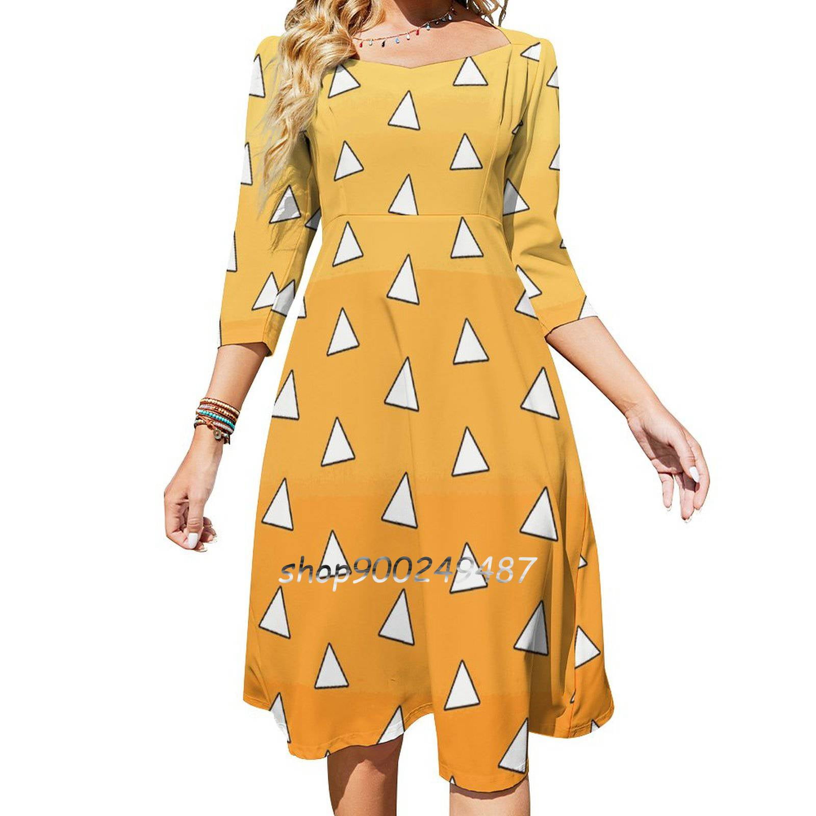 Demon Zenitsu Haori Pattern Flare Dress Square Neck Dress Elegant ...