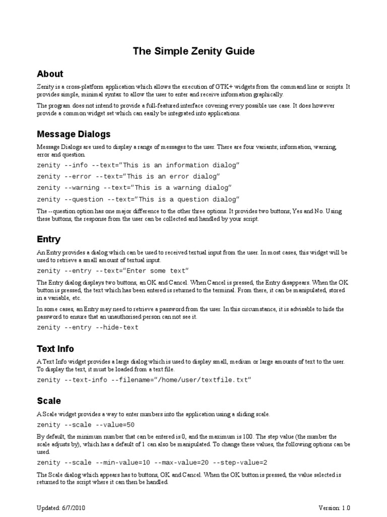 Simple Zenity Guide | PDF | Widget (Gui) | Command Line Interface