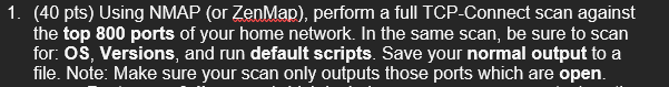 Solved 1. (40 pts) Using NMAP (or ZenMap), perform a full | Chegg.com
