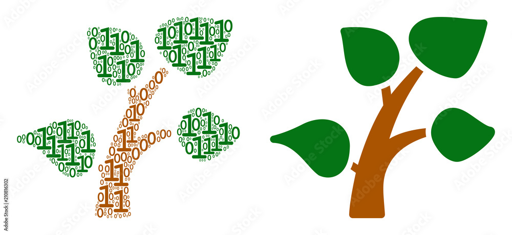 Plant tree mosaic icon of zero and one symbols in variable sizes ...