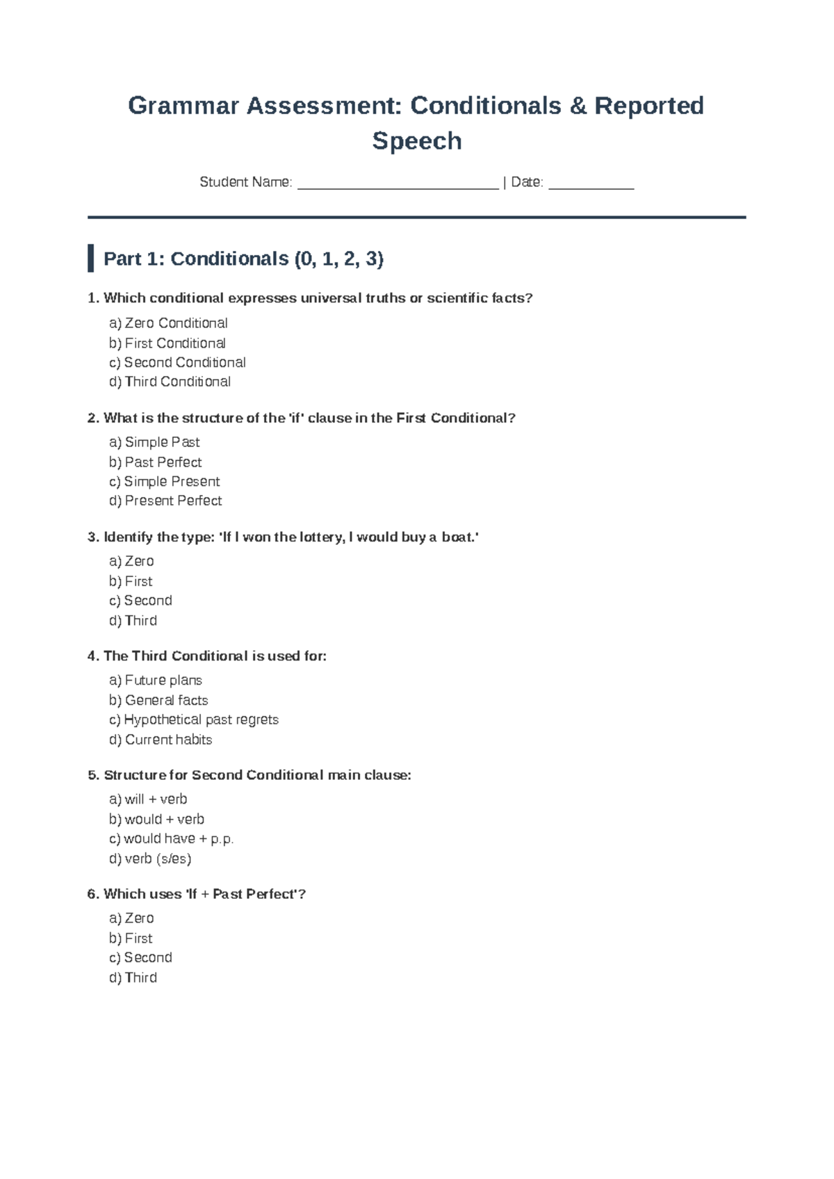 Grammar Quiz Assessment: Conditionals & Reported Speech - Studocu