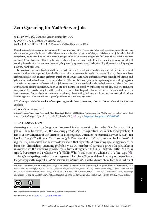 Zero Queueing for Multi-Server Jobs | Proceedings of the ACM on ...