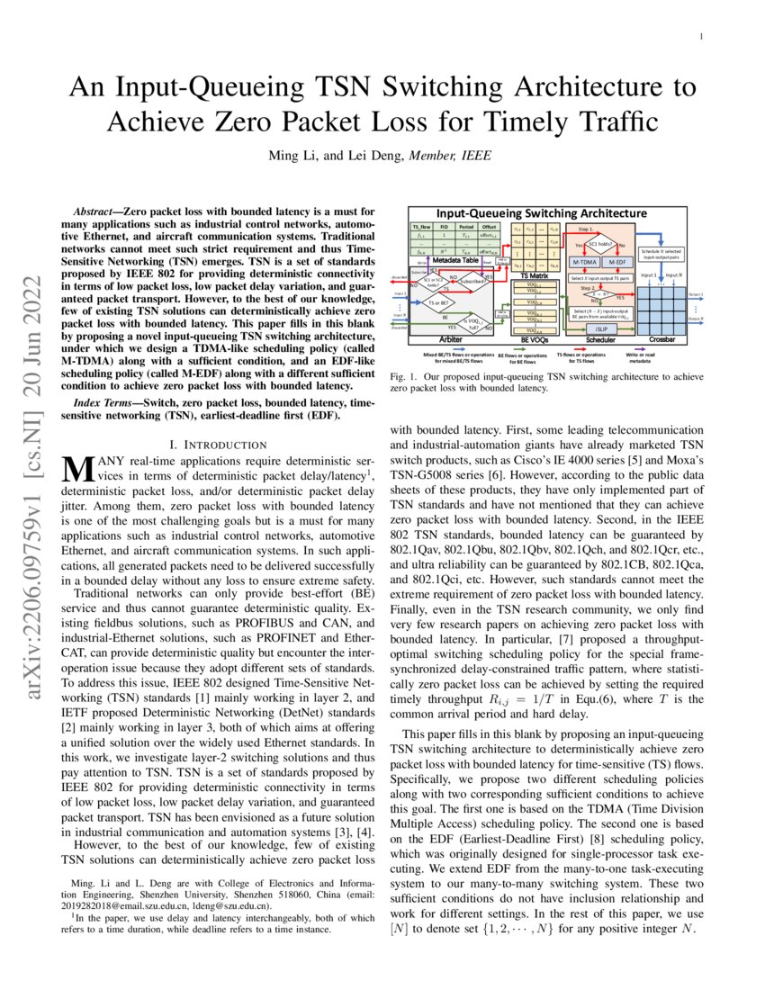 An Input-Queueing TSN Switching Architecture to Achieve Zero Packet ...