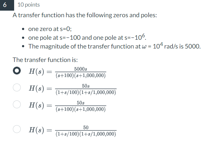 Solved What are the zeros of the transfer function of the | Chegg.com