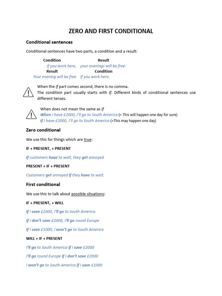 Zero and First Conditionals Grammar | PDF | Sentence (Linguistics) | Clause