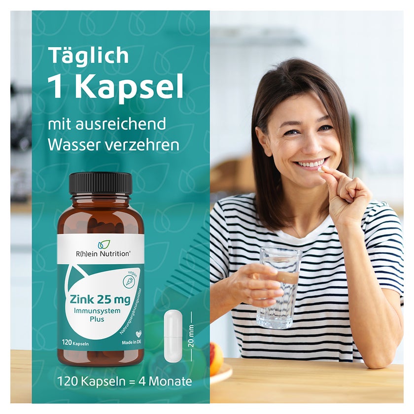 Zink 25 mg Immunsystem Plus hochdosiert+vegan Kapseln 120 stk
