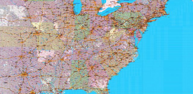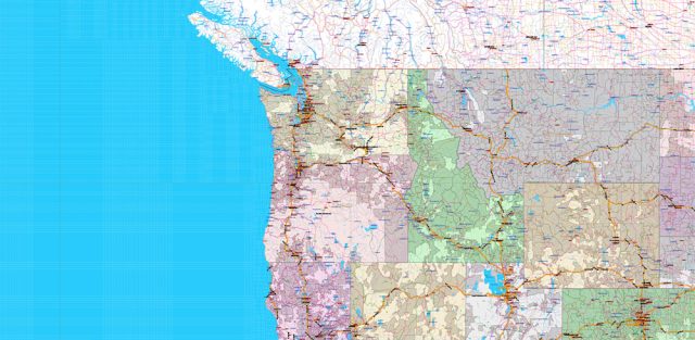 _United States (+ zipcodes) and Canada Vector Map Main Roads Cities ...