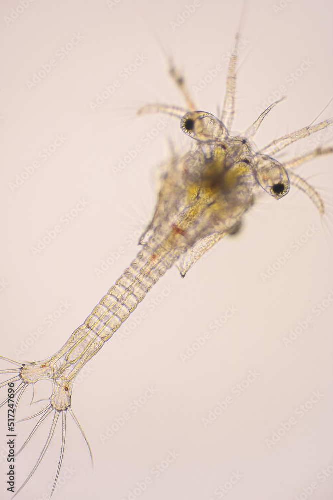 Shrimp, Zoea stage of Vannamei shrimp in light microscope, Shrimp ...