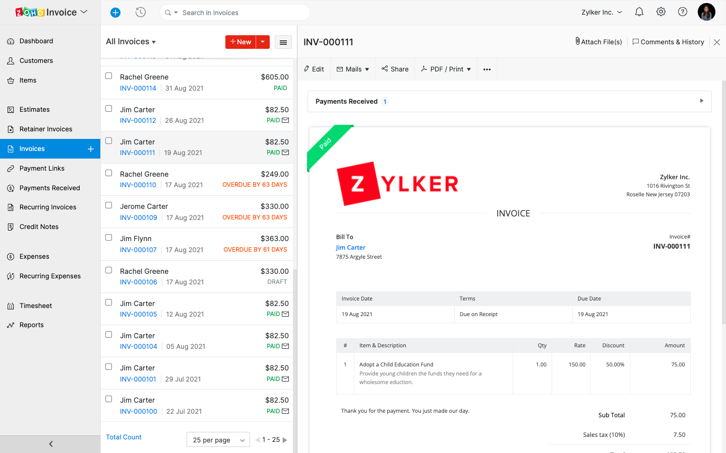 Zoho Invoice Reviews 2021: Details, Pricing, & Features | G2