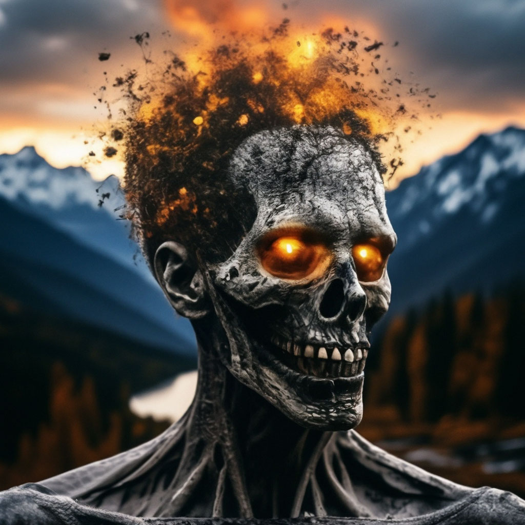 Infernal Decay: Exploding Zombie Skull Digital Art