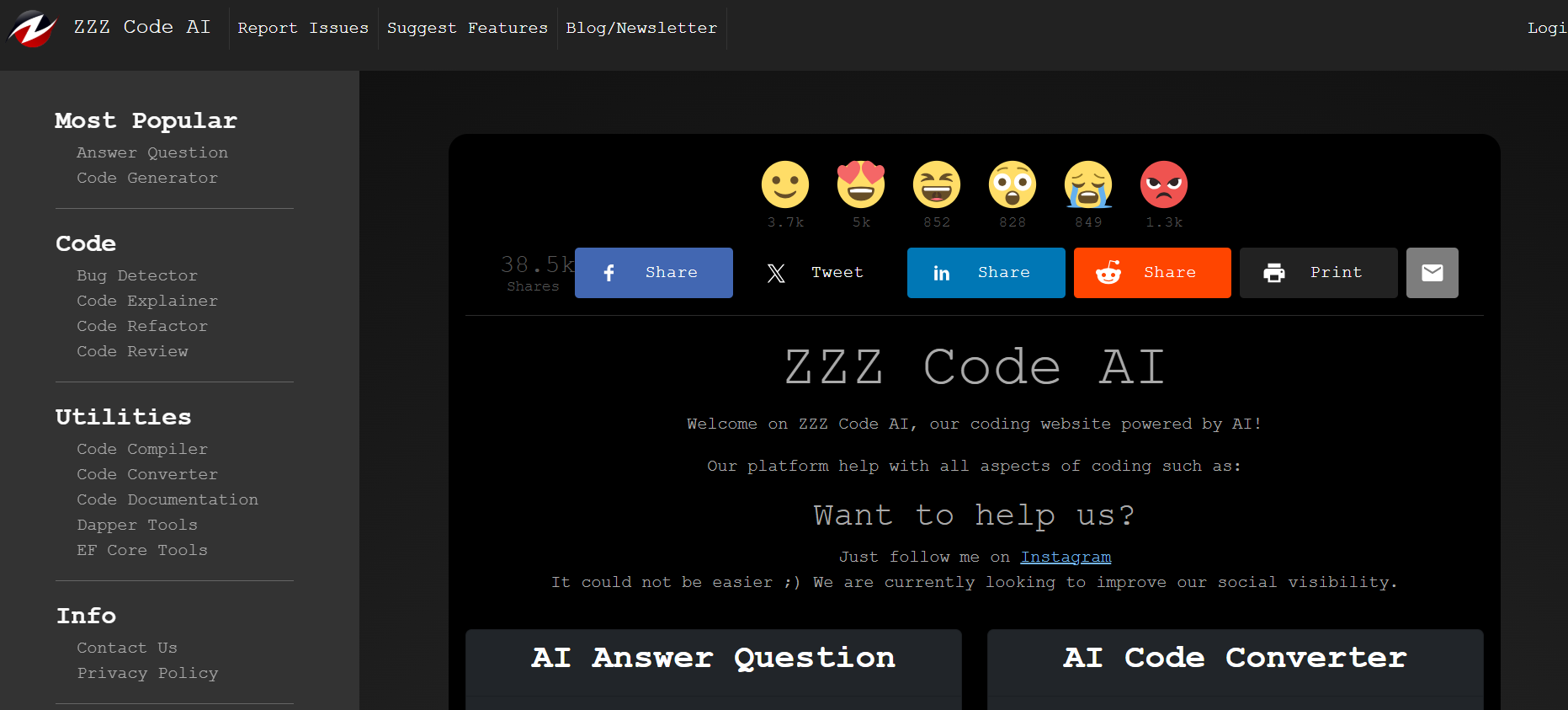 ZZZ Code AI: Free Code Generator, Bug Detector, Github