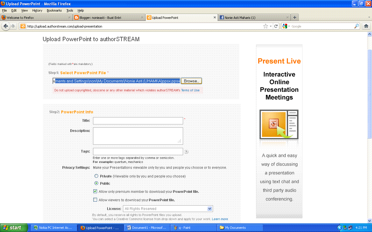 Langkah-langkah mengupload PPT(Power Point) ke AUTHORSTREAM | nonieasti