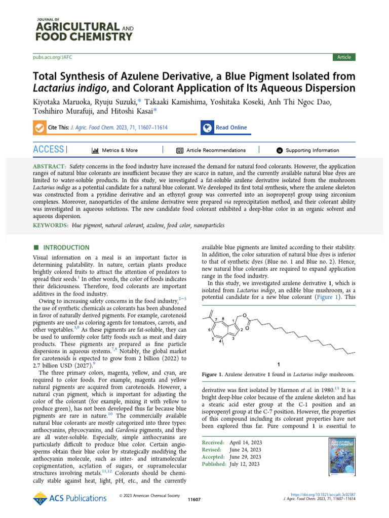 Maruoka Et Al 2023 Total Synthesis of Azulene Derivative A Blue Pigment ...