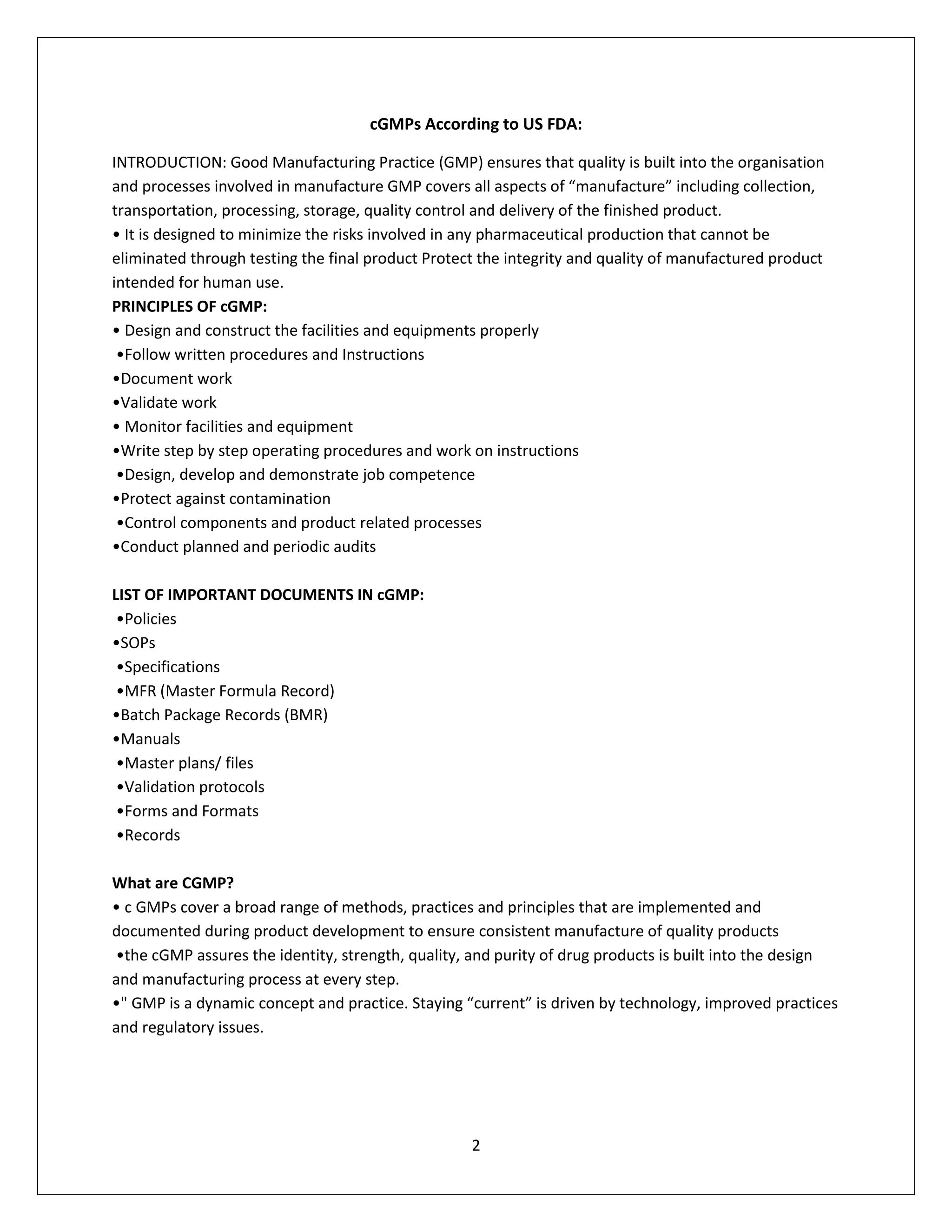 Current Good Manufacturing Practice (cGMP): An Overview for the ...