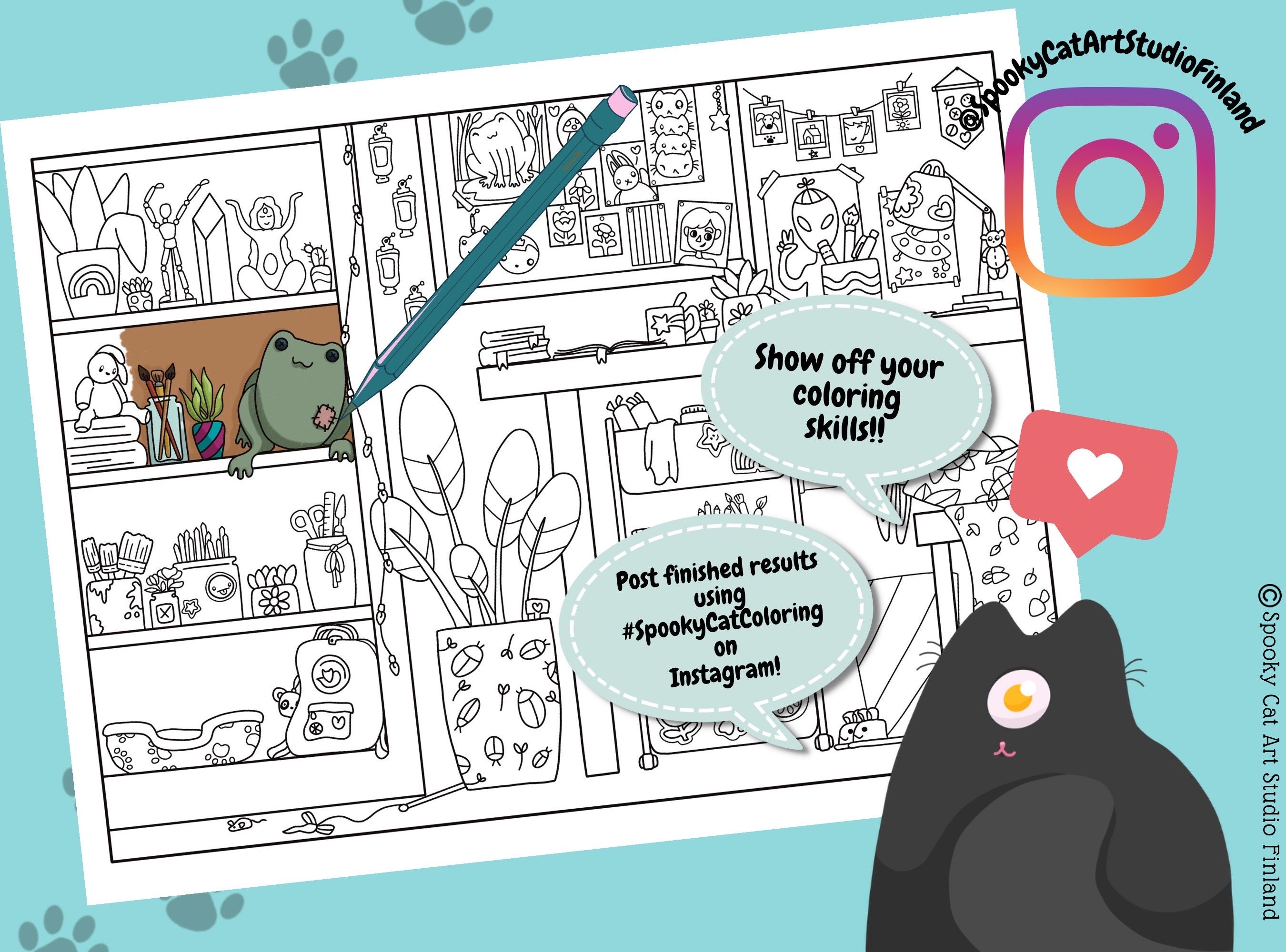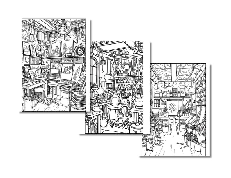 Wonderful Printable Coloring Page Art Studio Detailed Digital Coloring ...