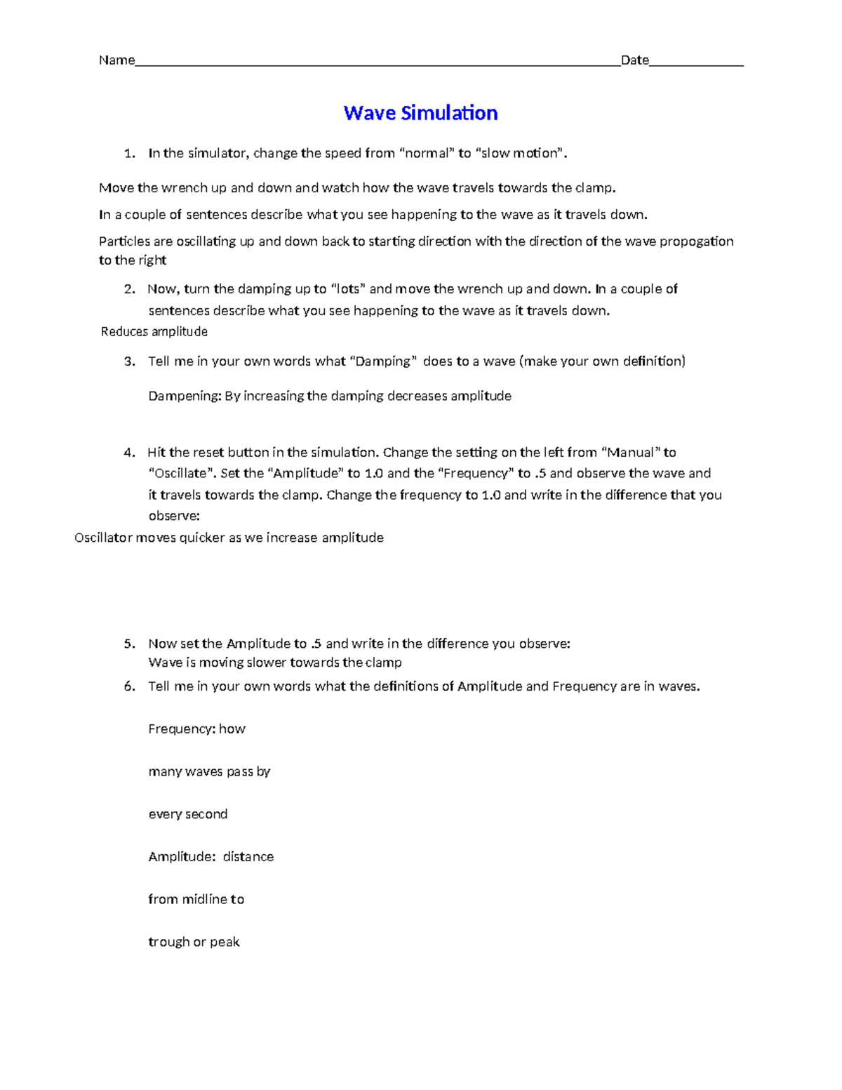 Lab - Wave Simulation 1: Observations and Definitions - Studocu