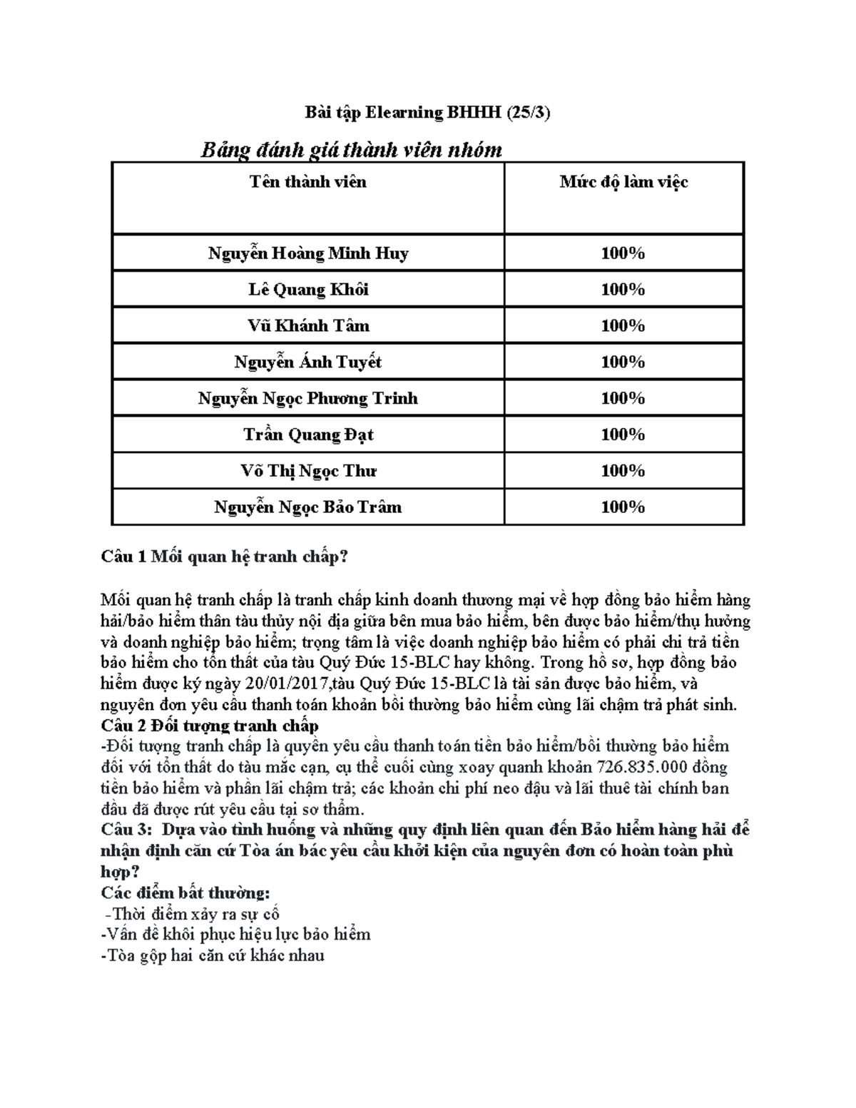 Nhóm 3 - Bài Tập Elearning: Đánh Giá Tranh Chấp Bảo Hiểm Hàng Hải - Studocu