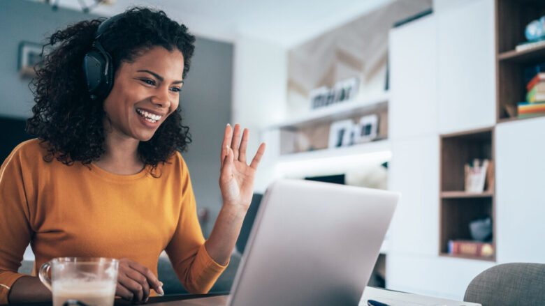 Premium Photo | This image shows a person participating in elearning ...