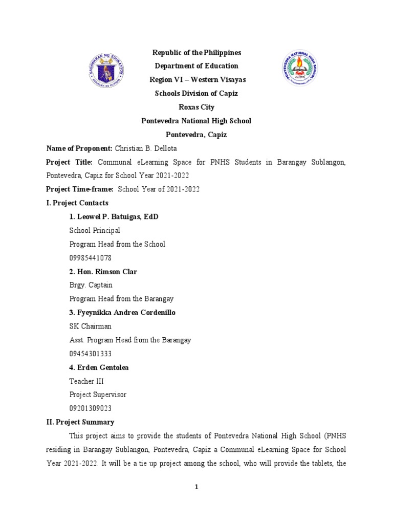 Project Proposal For Communal ELearning Space | PDF | Educational ...