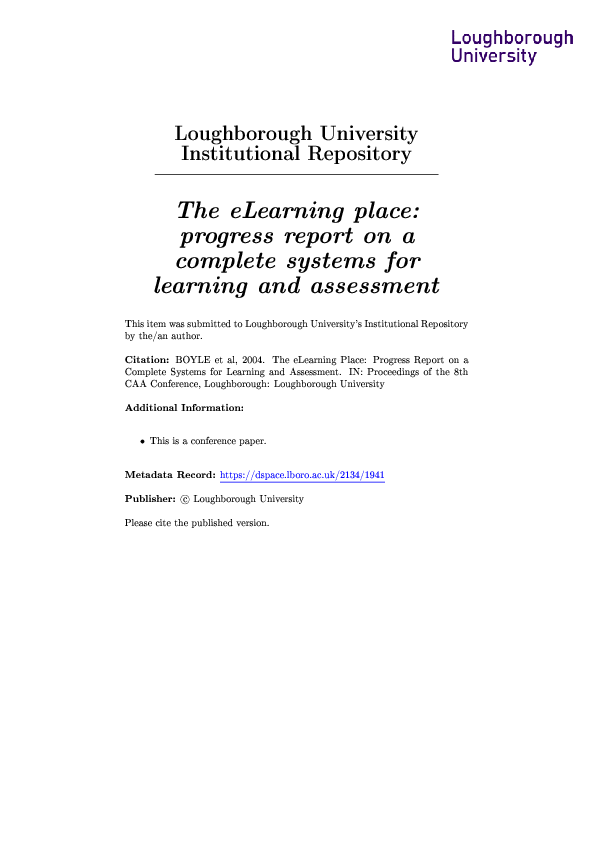 (PDF) The eLearning place: progress report on a complete systems for ...