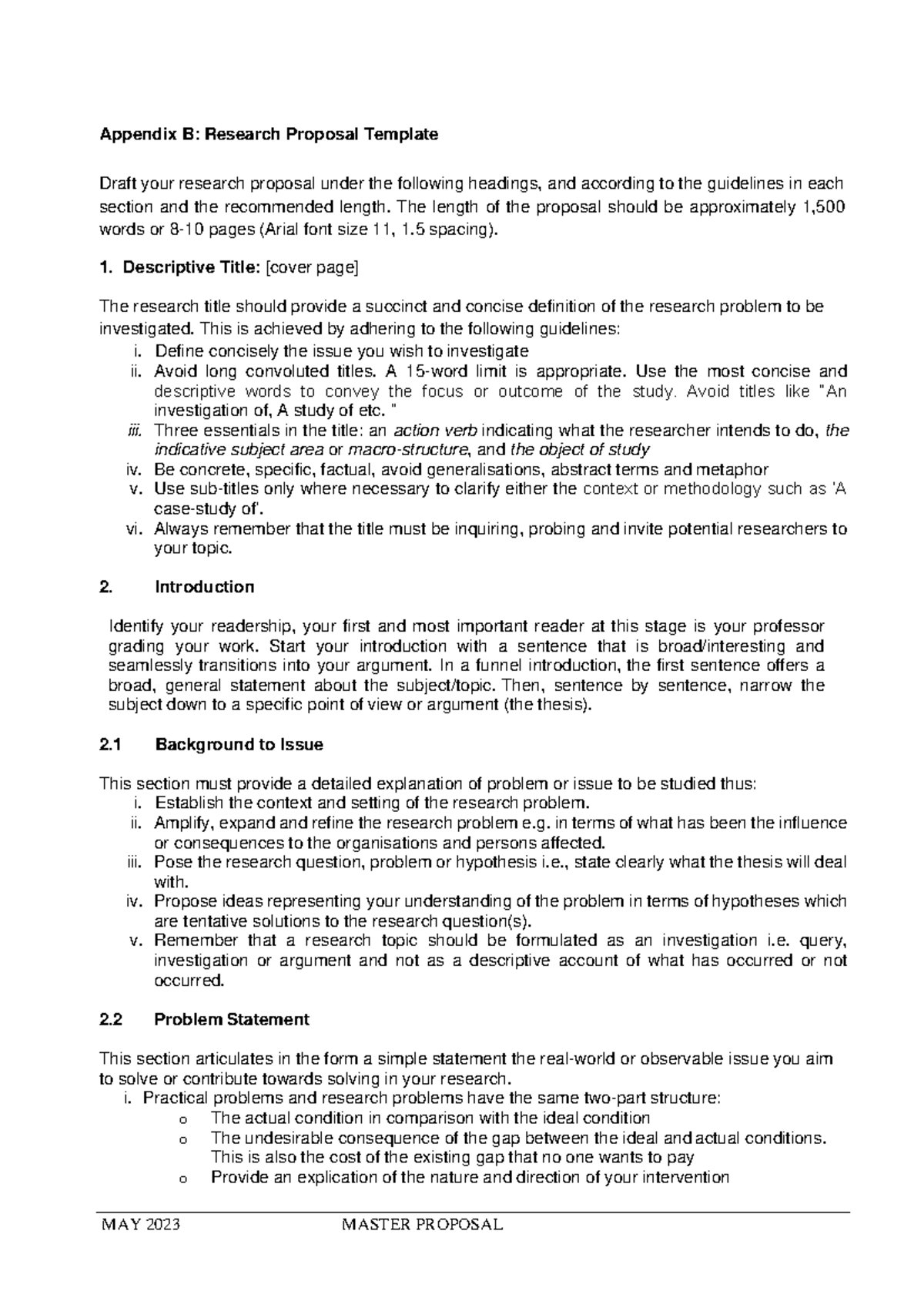 Appendix B: Research Proposal Template Guidelines (2023) - Studocu