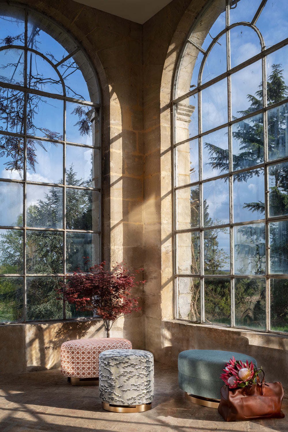Tabouret en tissu tapissé et piétement laiton - Gumi – Bruno Moinard ...