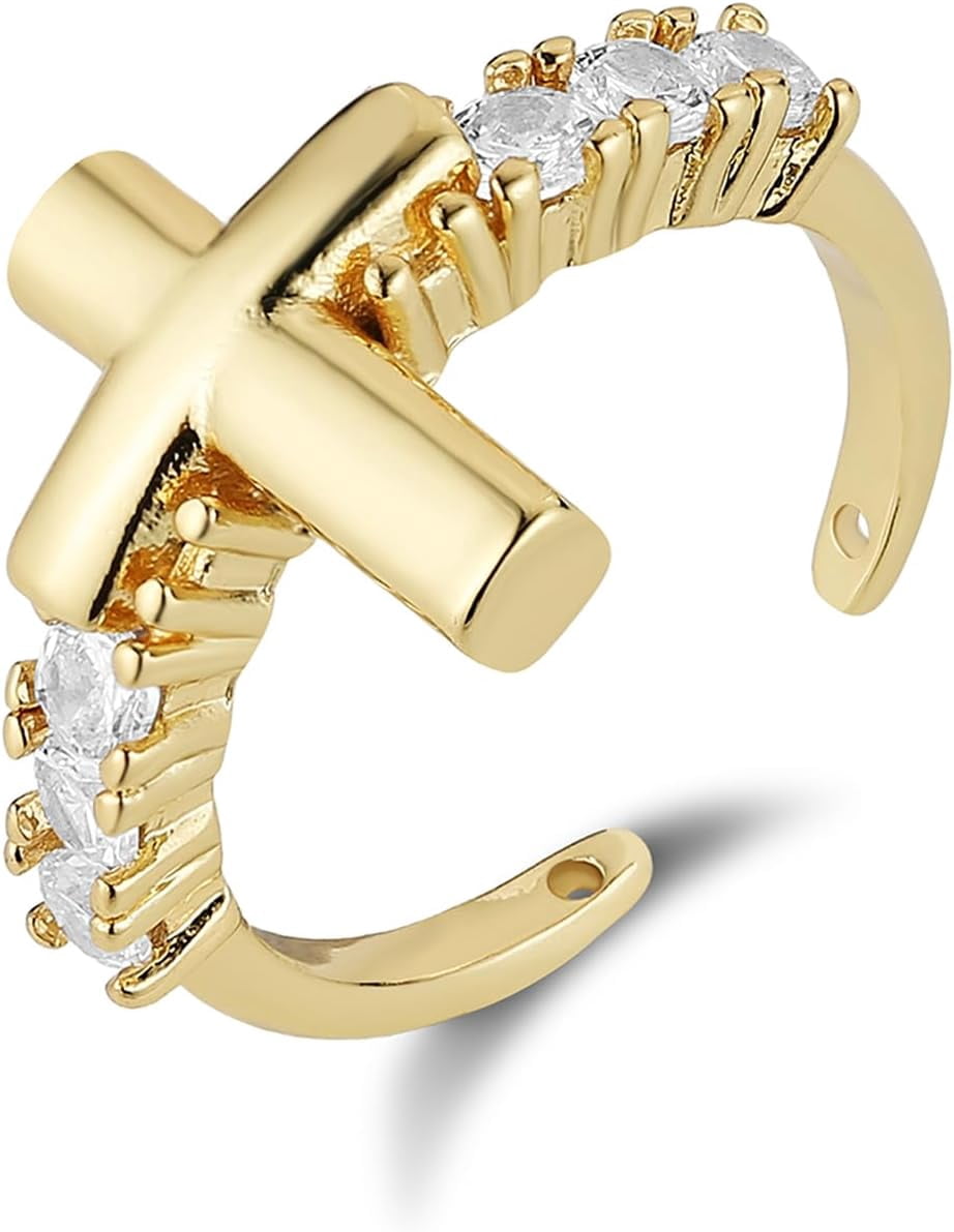 Adjustable Open Ring for Women, 18K Gold Plated Brass Cross/Virgin Mary ...