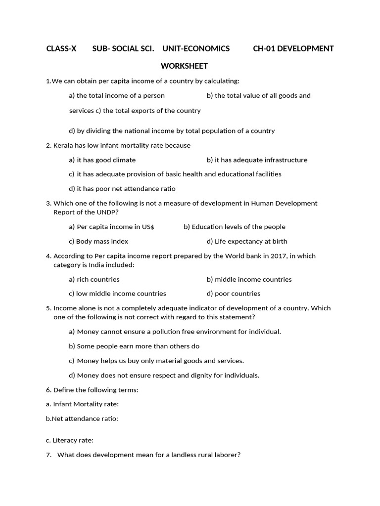 Development Worksheet | PDF | Gross Domestic Product | Economies