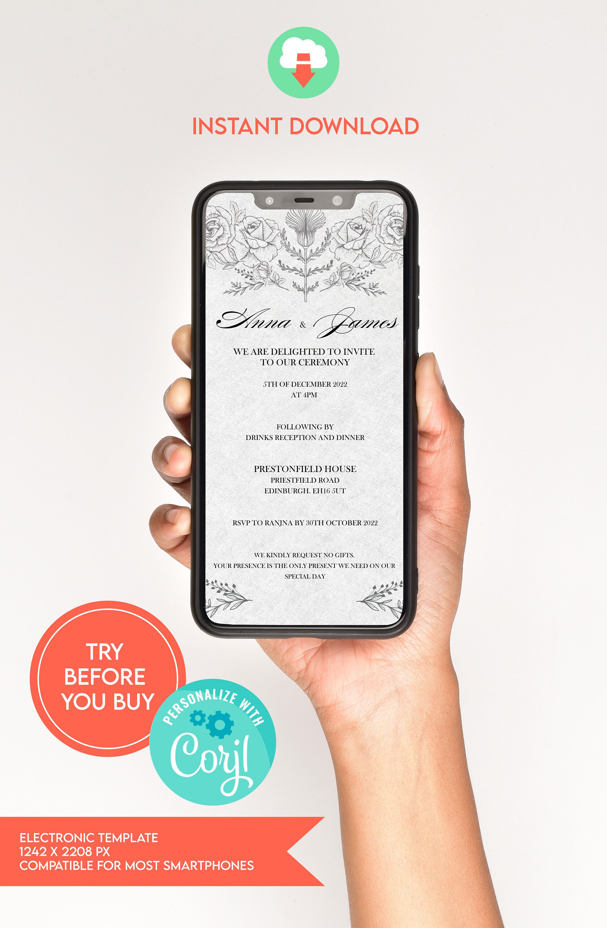 Luxury Wedding Evite Template, Wedding Invitation Digital, Evitation ...