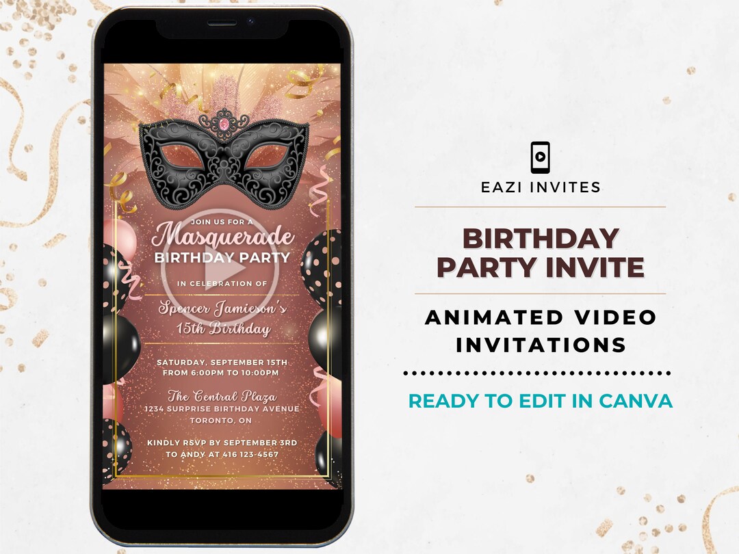 Masquerade Party Invitation Template | Birthday | Animated Video ...