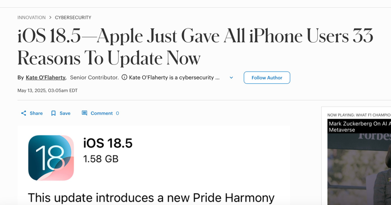 为何更新iOS 18.5?苹果给出这些理由