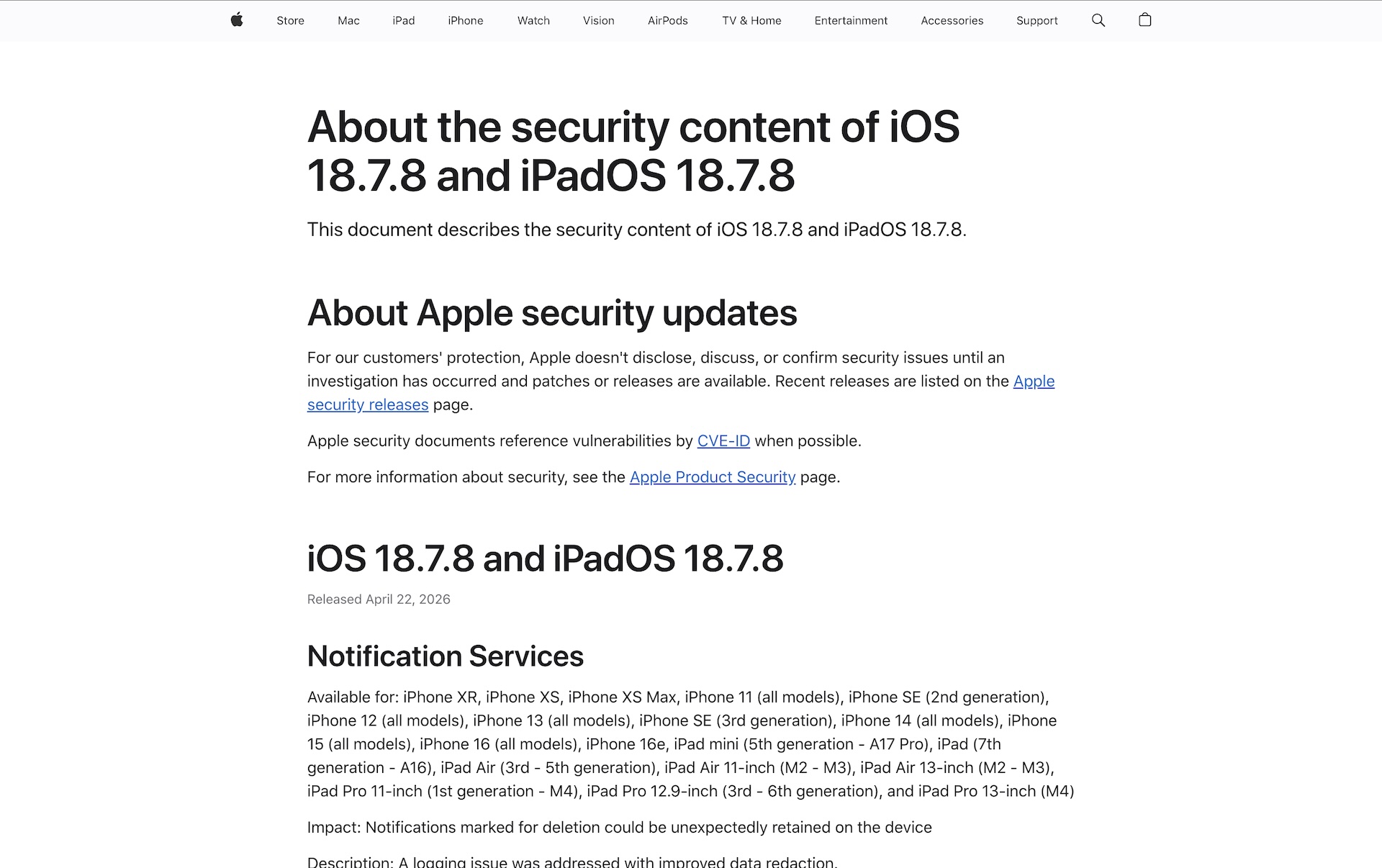 Apple、「iOS 18.7.8」と「iPadOS 18.7.8」をリリース ー 通知に関する問題を修正 | 気になる、記になる…