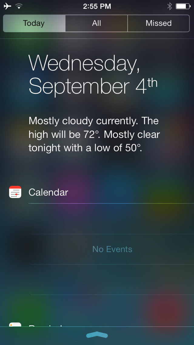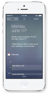 New in iOS 7: Notification Center 'Today' stream shows context-based alerts