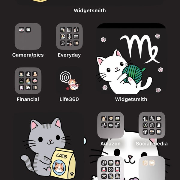 Cute Cats App Icons Pack Phone Theme Cute Wallpapers Ios - Etsy
