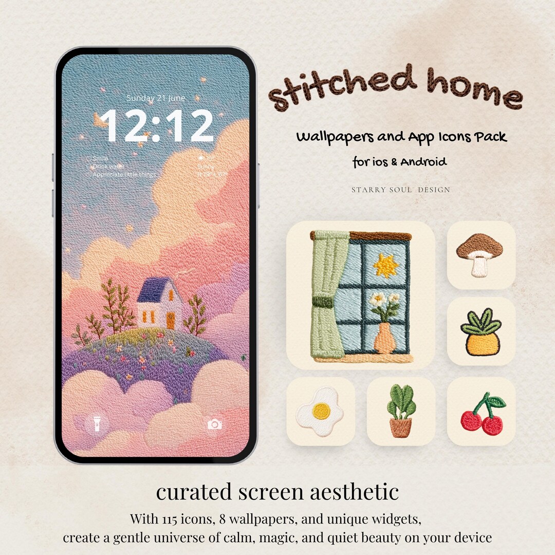 Stitched Home App Icons | Cozy Embroidery Ios & Android Theme, Cute ...