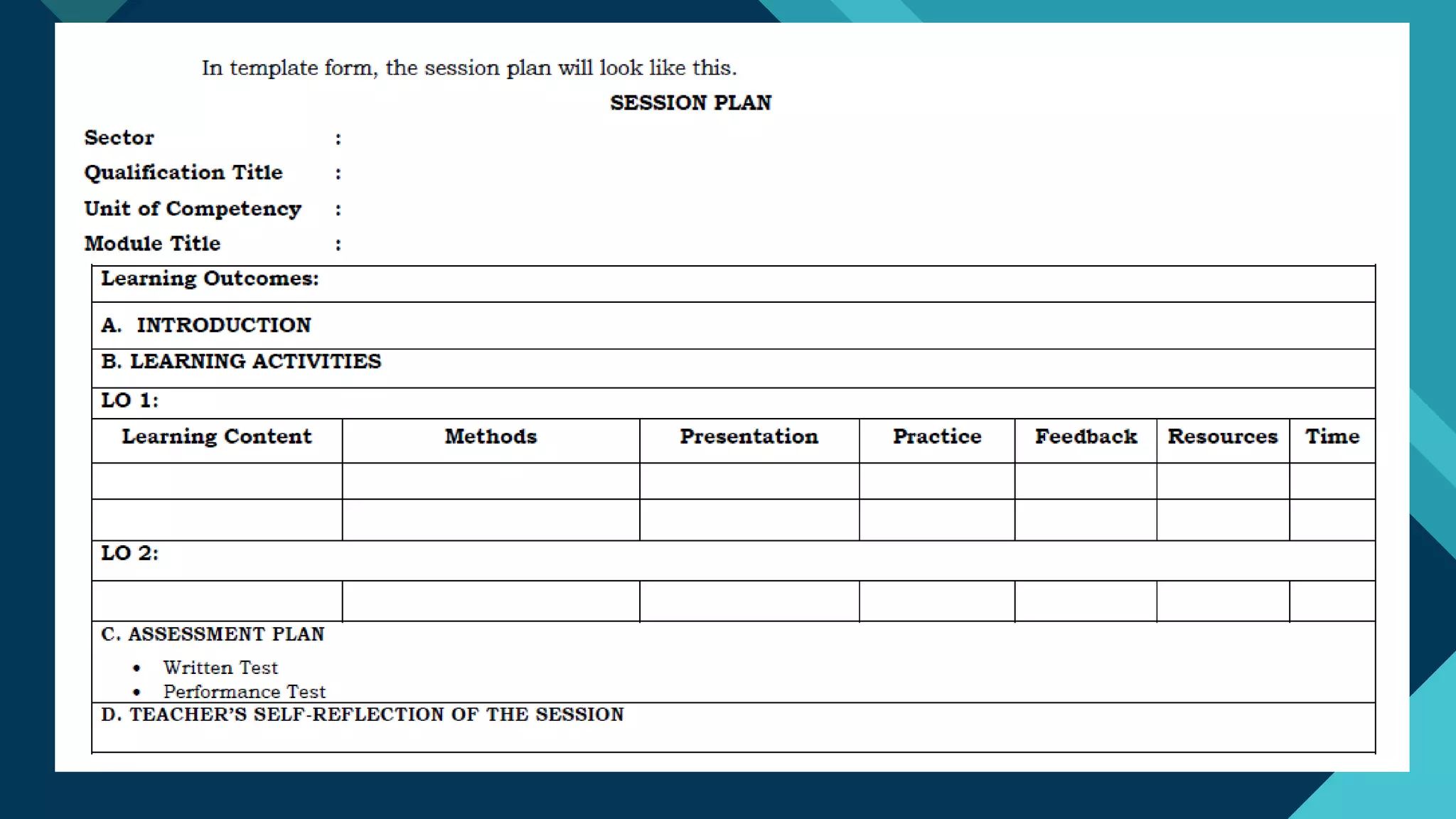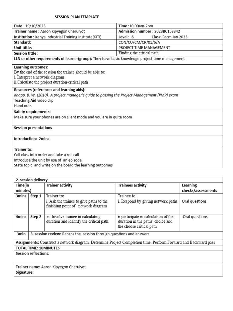Sample Session Plan Template | PDF